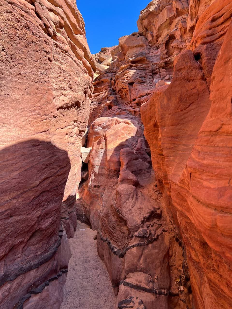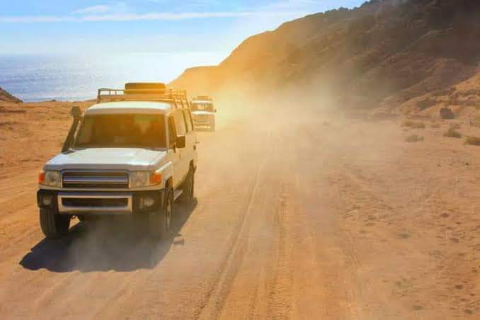 take a Jeep to the famous colorful rocks of the Colored Canyon (Salama Red Canyon) and stroll along an 800-meter stretch of canyon adorned with magnificent multicolored sandstone cliffs in shades ranging from yellow, purple, red, to gold.
